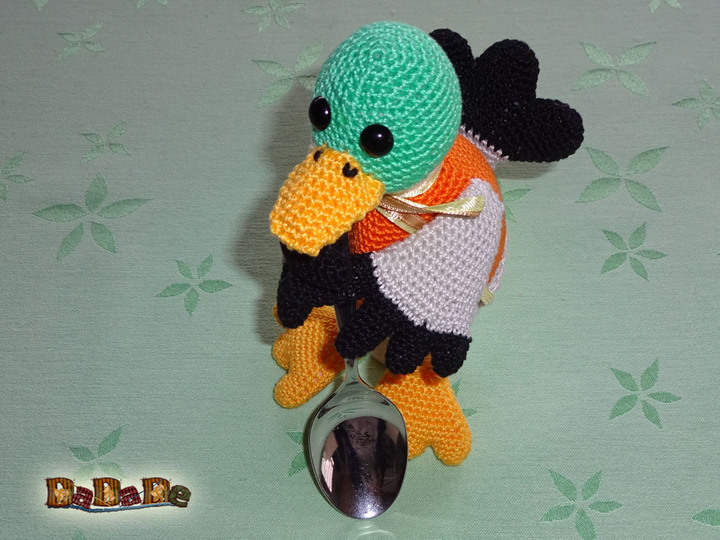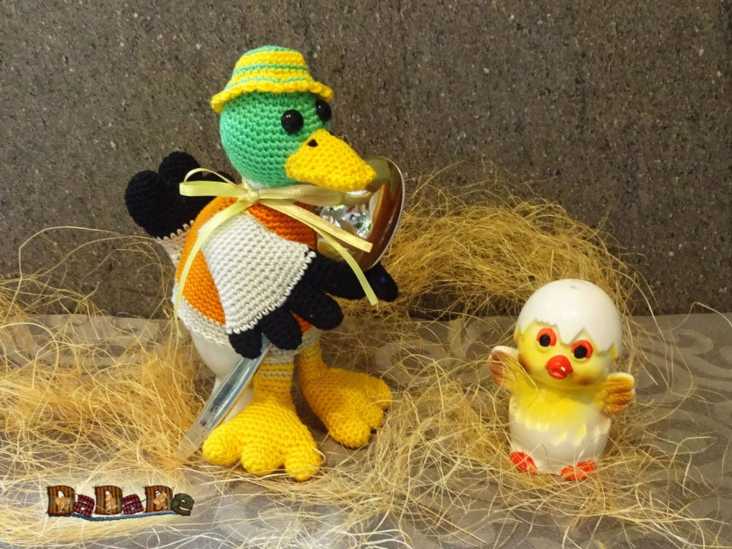 Die Ente wir mit Nadelstärke 2; ungefähr 14cm hoch,