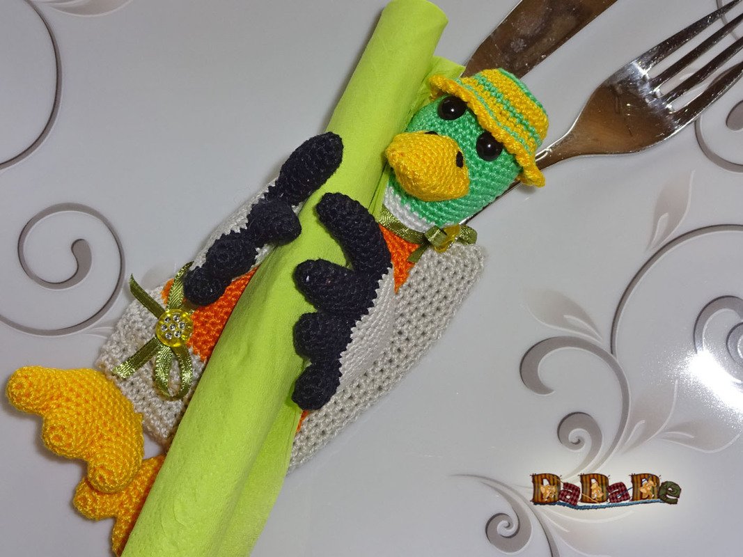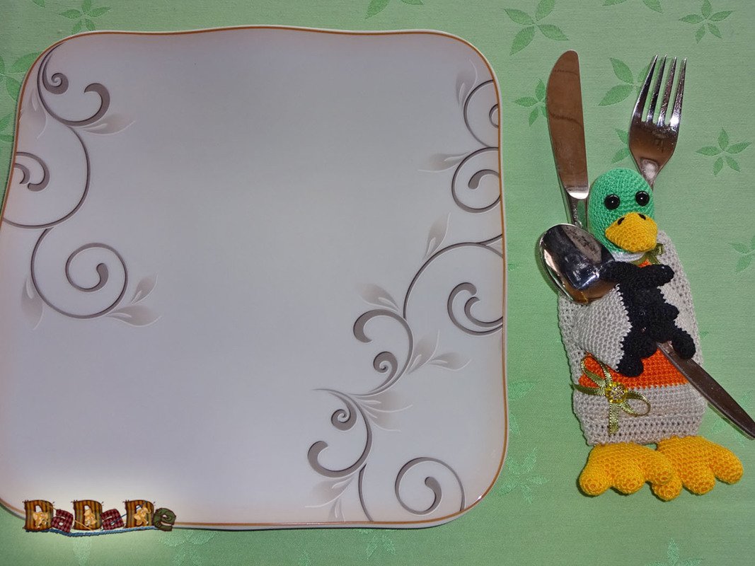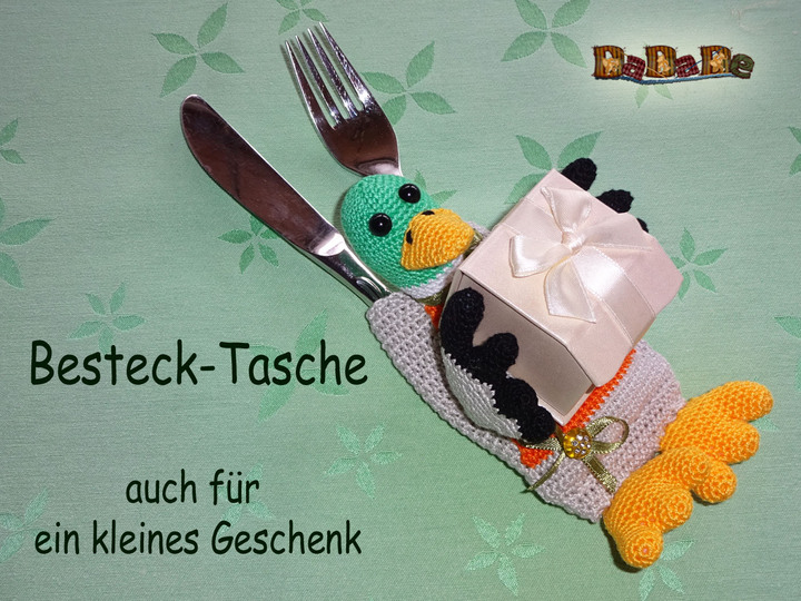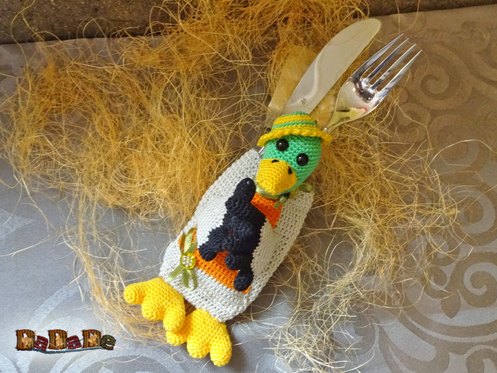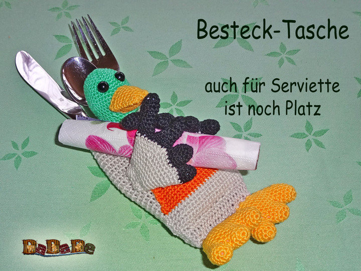 zu der Bestecktasche gibt es auch noch einen Eierwärmer und den Serviettenhalter,
