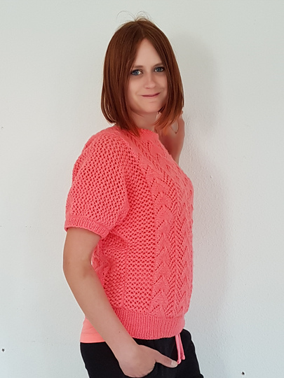 Im Frühjahr/Sommer kannst du es gut mit kurzen Ärmeln tragen, für den Winter aber auch mit langen ärmeln stricken, oder du trägst ein dünneres langarmshirt darunter.