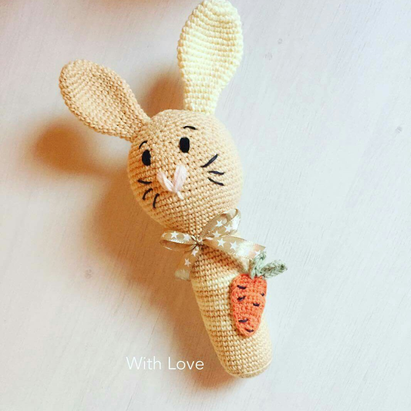 Ob als kleines, mit viel Liebe zum Detail gehäkeltes Geschenk zur Geburt oder Taufe, oder als erstes Spielzeug mit Mamas Liebe in jeder Masche, ist dieses Häschen ein absoluter Blickfänger.