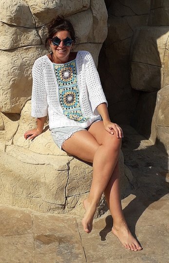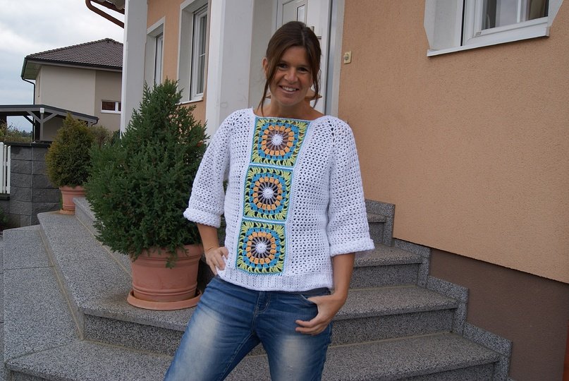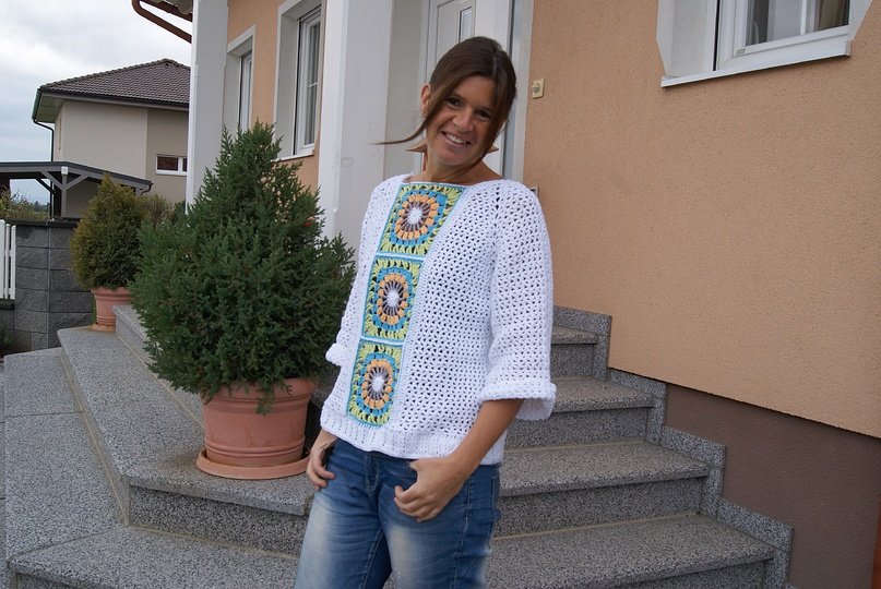 Der Pulli ist ein angenehmer Begleiter für das ganze Jahr – egal ob mit Langarmshirt, ärmellosen Top oder mit Bikini darunter – gleich ob elegant, festlich oder sportlich ... dieses Teil passt einfach immer und das Muster kann auch wunderbar mit verschiedener Wolle gehäkelt werden.