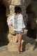 Gr. S/M Oversize: Weiß (Fb 01): 400 g (= 8 Knäuel), je 50 g (= 1 Knäuel) von Blau (Fb 09), Apricot (Fb 017), Hellgrün (Fb 023) und Grau (Fb 027)