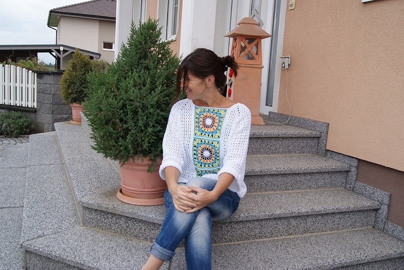 die Anleitung für diesen wunderschönen Pullover habe ich schon vor einiger Zeit gekauft, komme aber erst jetzt dazu, ihn zu häkeln.