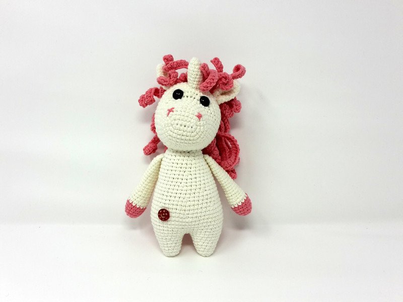 Diese Häkelanleitung beeinhaltet Mina, das kleine Einhorn.