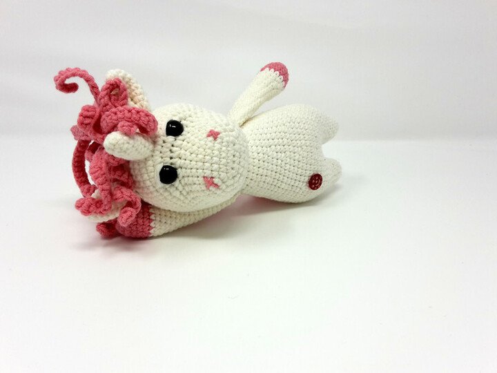 Dieses Stummeltierchen ist ein schnelles Projekt für zwischendurch, da nur etwa 60 Gramm Wolle benötigt werden.