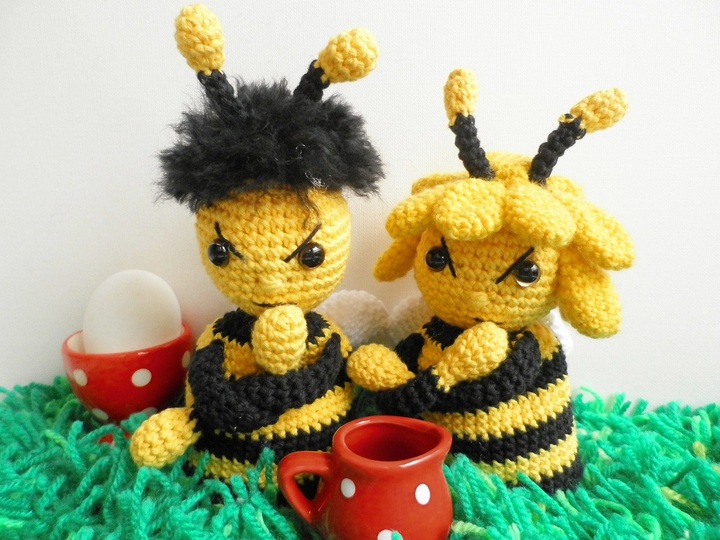 Die Anleitung beinhaltet beide Bienen, sie sind ca. 15 cm hoch, welches aber je nach Wollstärke sowie Stärke der Häkelnadel variieren kann.