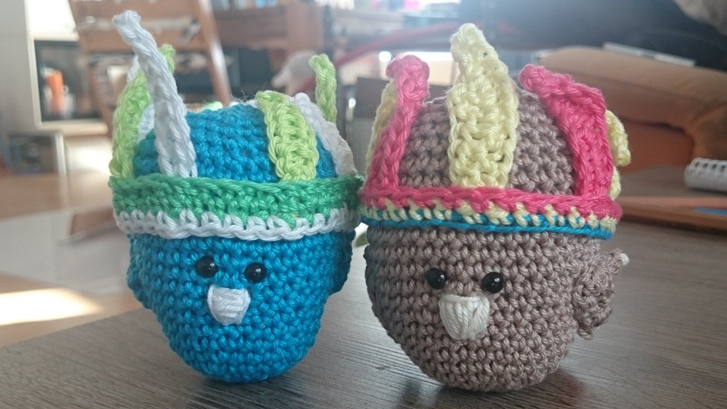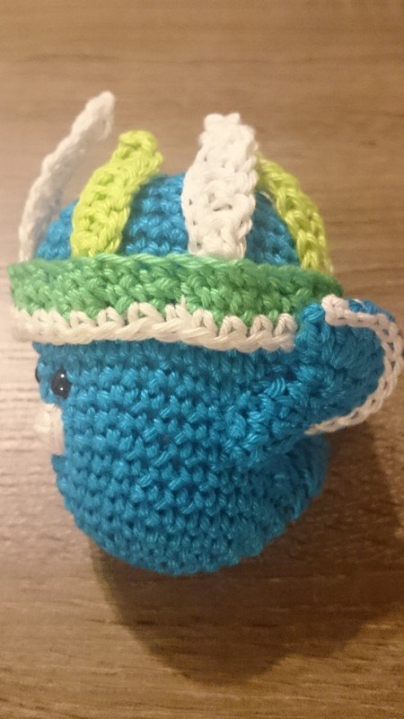 Piep wird mit der angegebenen Wolle ca. 8 cm hoch. Es kann aber durchaus auch mit dickerem Garn gehäkelt werden.
