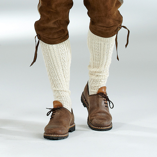 bei den Herrentrachtenkniestrümpfen 753016 werden die verschränkten Maschen in den geraden Runden ebenfalls rechts verschränkt gestrickt.