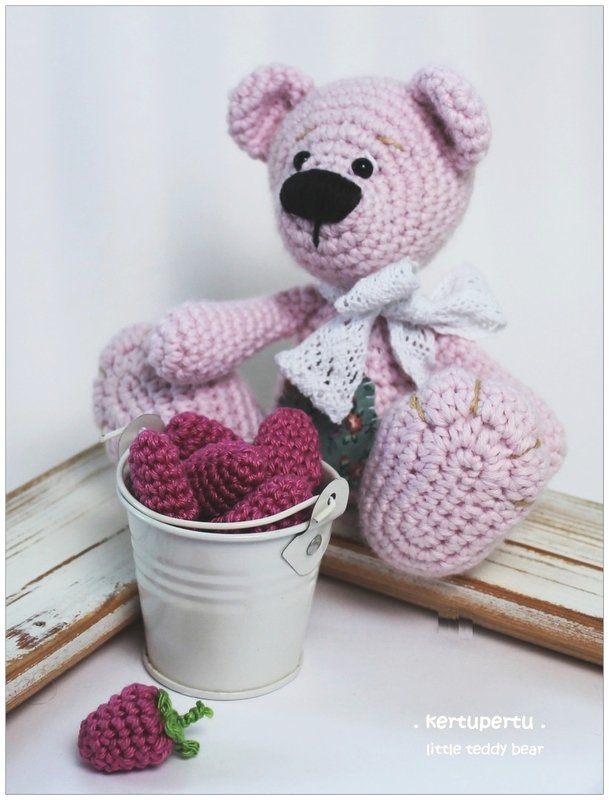 Diese Bärchen hier lieben über alles auf der Welt Himbeeren! Deswegen haben sie auch etwas himbeerfarbenes Aussehen - warscheinlich haben die Bären etwas zu viele Himbeeren (Anleitung ist auch dabei) gegessen.