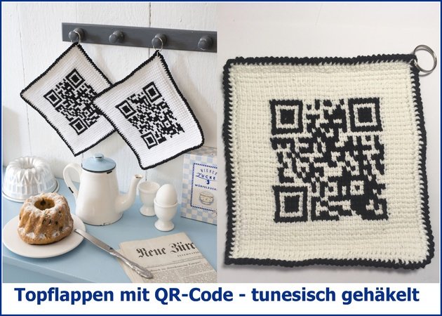 Topflappengarn - 100 g Weiß und 50 g Schwarz, tunesische Häkelnadel Nr. 4