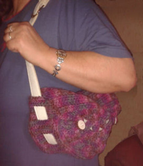 Gehäkelte Filztasche mit Gürtel als Henkel