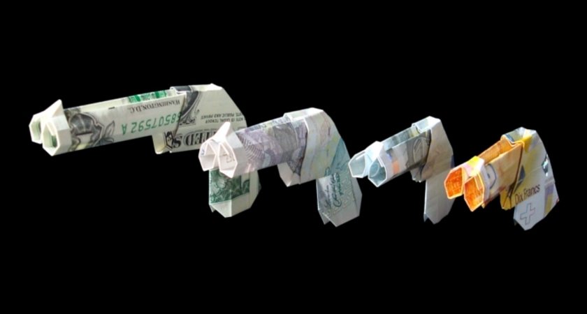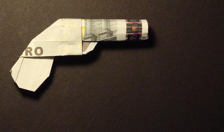 Die Geldschein Pistole wird aus einem Geldschein gefaltet. Die Pistole kann aus jedem Euro Geldschein oder aus jeder anderen Währung gefaltet werden. Hier in den Fotos ist sie aus einem 5 Pfund Sterling, 10 Schweizer Franken, 1 US-Dollar und 5 Euro Geldschein gefaltet. Die Faltanleitung besteht aus 9 Seiten und ist etwas für Falter und Falterinnen die schon etwas Erfahrung im Falten haben. Die Faltanleitung besteht aus der für die Pistole und der für die doppelläufig Pistole.