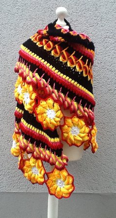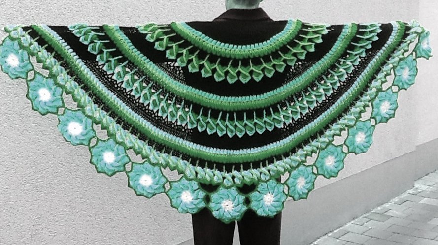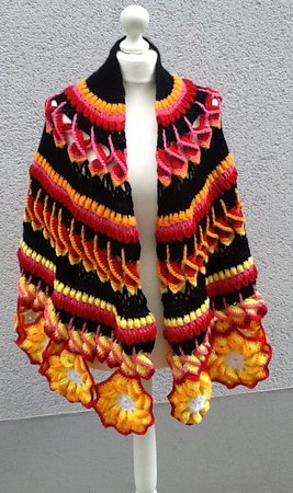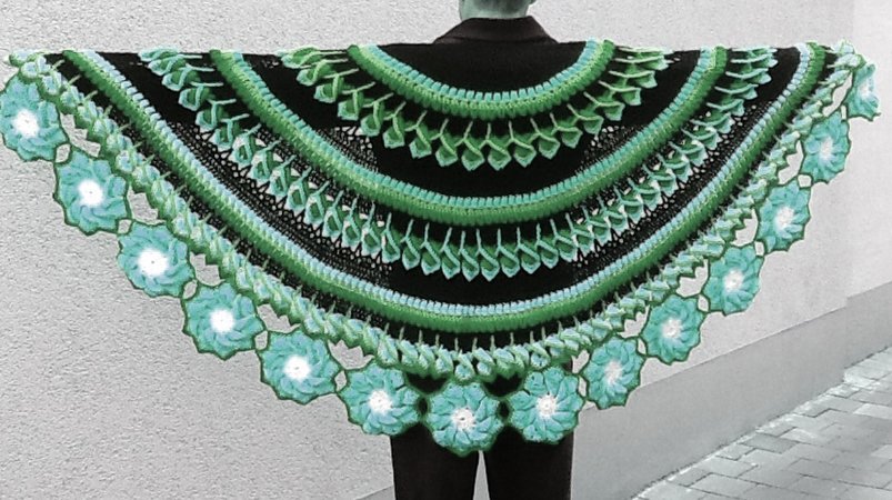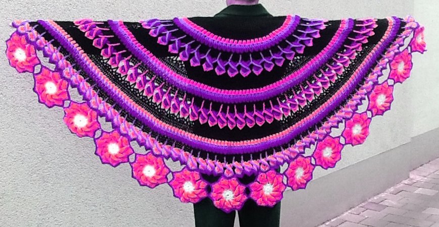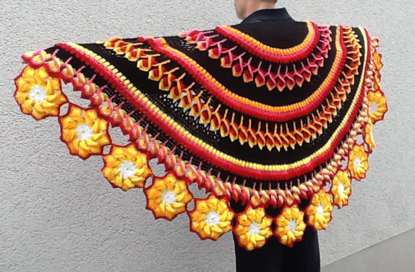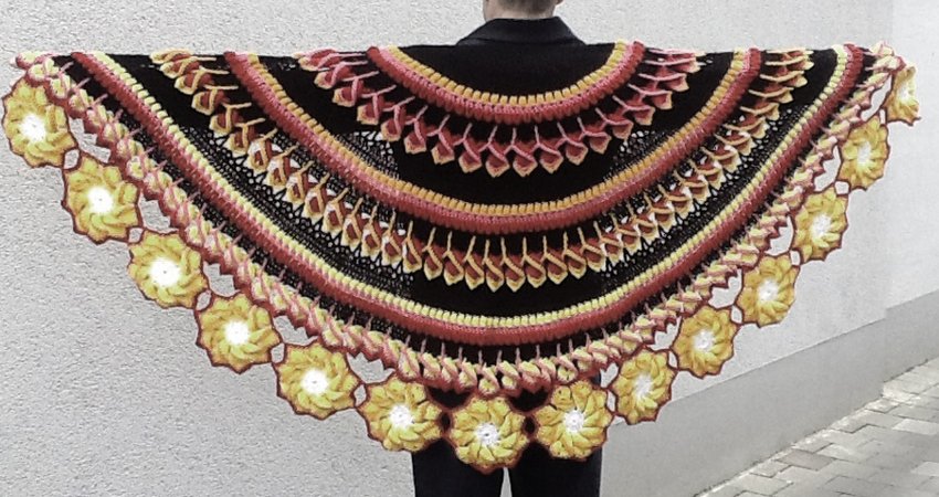 Dieses gehäkelte, halbrunde Schultertuch ist ein Leckerbissen für Wollefreunde mit Ausdauer.