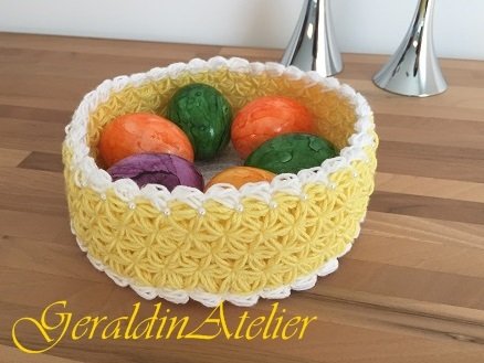 Ein schönes gehäkeltes Körbchen im zeitlosen Muster für Ostereier, Kleinigkeiten oder als Deko zu benutzen.