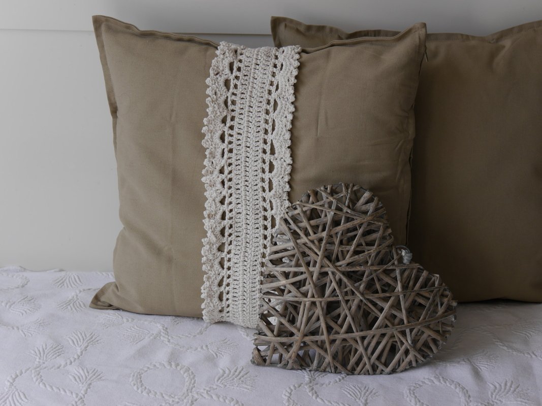 Ein Kissen im Shabby Style ist zur Zeit sehr angesagt.Der Musterstreifen der in jeder beliebigen Farbe und auch Garnstärke gearbeitet werden kann wirkt auf einfarbigen Kissen natürlich am besten.