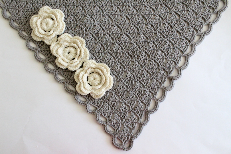 Tuch PDF Häkelanleitung, Blumen nur als Dekoration in der Anleitung nicht enthalten.