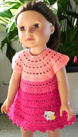 Dieses hübsches Kleid kannst Du für 45-50 cm großen Puppen häkeln.
