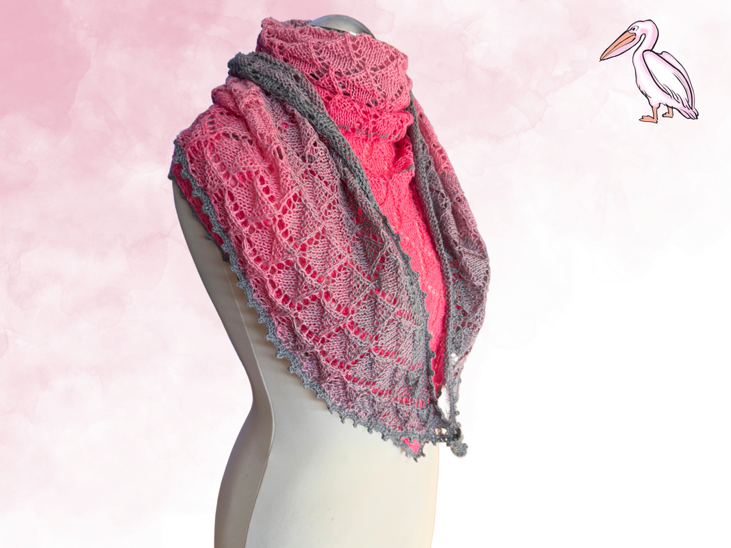 Ein zartes Ajourmuster verleiht diesem Tuch einen Hauch Romantik. Das Tuch wird von unten nach oben gestrickt, wer häkeln kann sorgt mit einer Pikotrunde für einen tollen Abschluss.