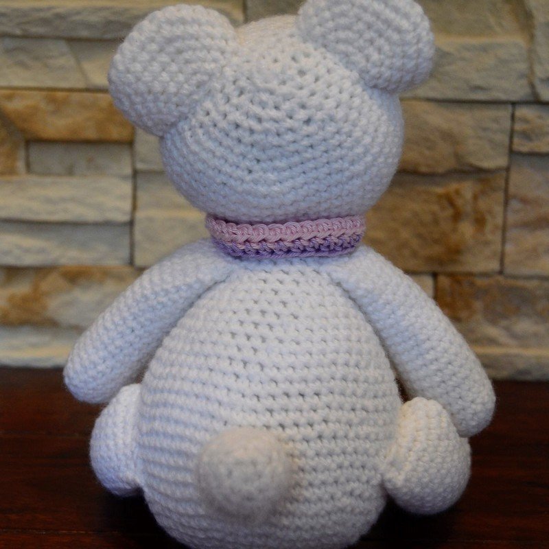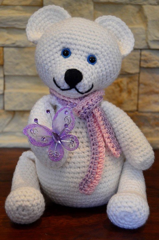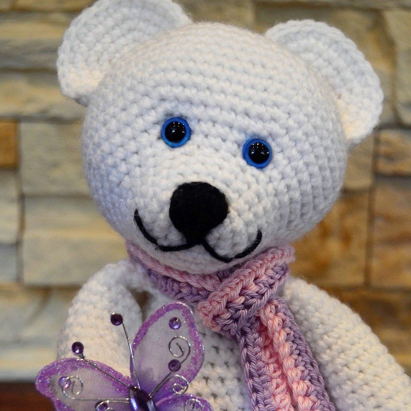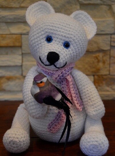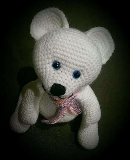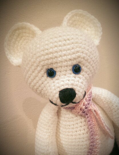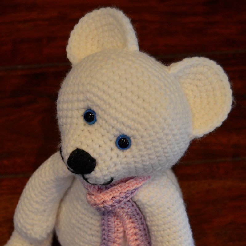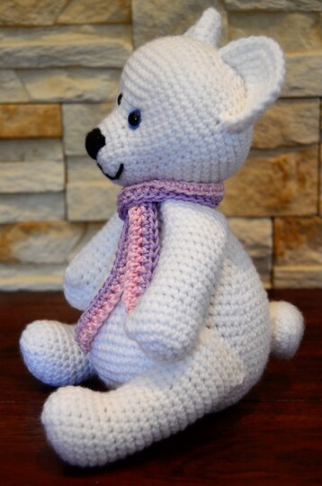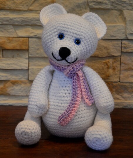 Häkelanleitung als PDF für einen kleinen Eisbär mit Schal .