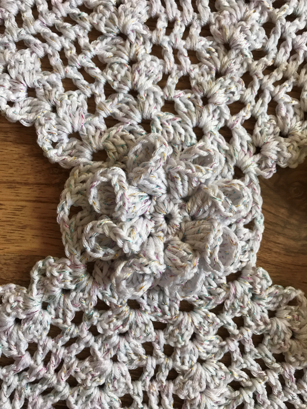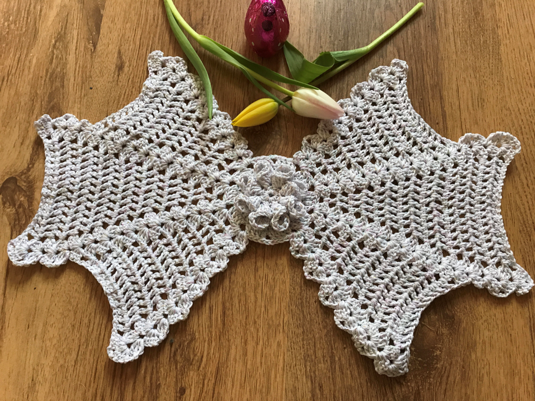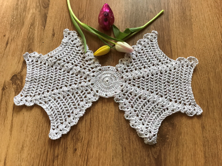 Diesen bezaubernden Tischläufer könnt Ihr euch in kurzer Zeit für euer zu Hause zaubern, ich habe ca 1 Tag gebraucht und mit Nadelstärke 3 gearbeitet.