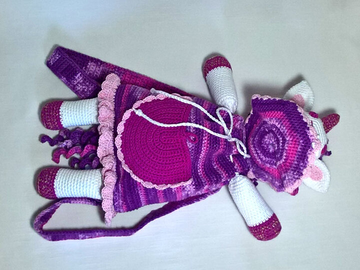 Hier gibt es die Häkelanleitung für einen Rucksack kleiner Prinzessinen.