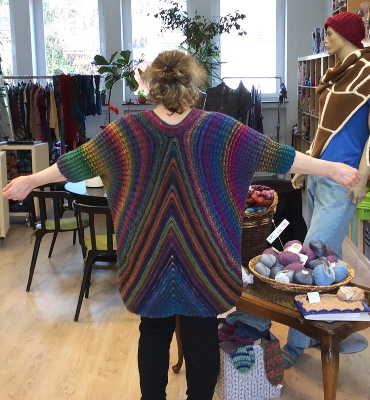 Wenn du mehr Länge gewinnen möchtest, beginnst du am besten gleich beim Maschenanschlag mit ein paar mehr Maschen am Ärmelbündchen. Aber Achtung, das Rippenmuster hängt sich etwas aus, nicht, dass die Jacke noch zu lang wird.