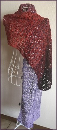 2 zusammen abgemaschte Stäbchen in 1 Einstichstelle (= 1 Umschlag auf die Nadel legen, einstechen, den Faden holen und durchziehen, den Faden holen und durch 2 Schlingen ziehen. Nun nochmals 1 Umschlag auf die Nadel legen, einstechen, den Faden holen und durchziehen, den Faden holen und durch 2 Schlingen ziehen. Abschließend den Faden holen und durch alle 3 Schlingen ziehen