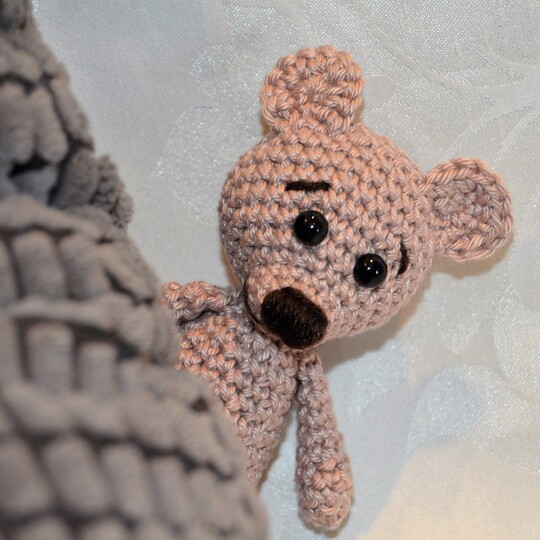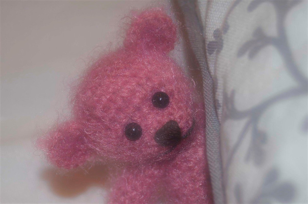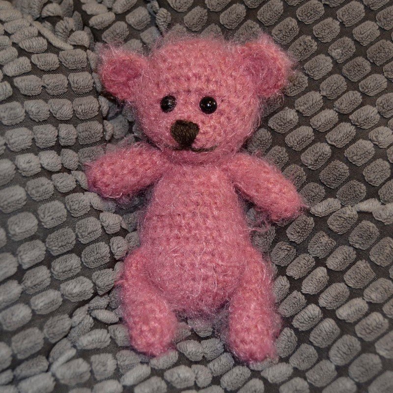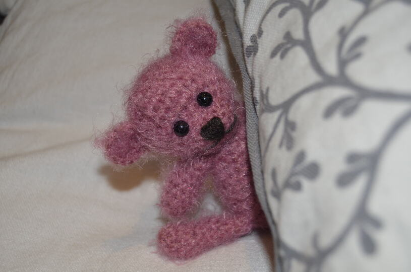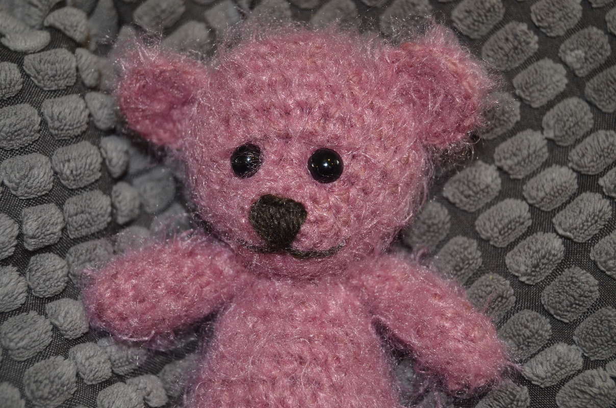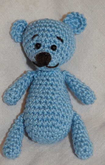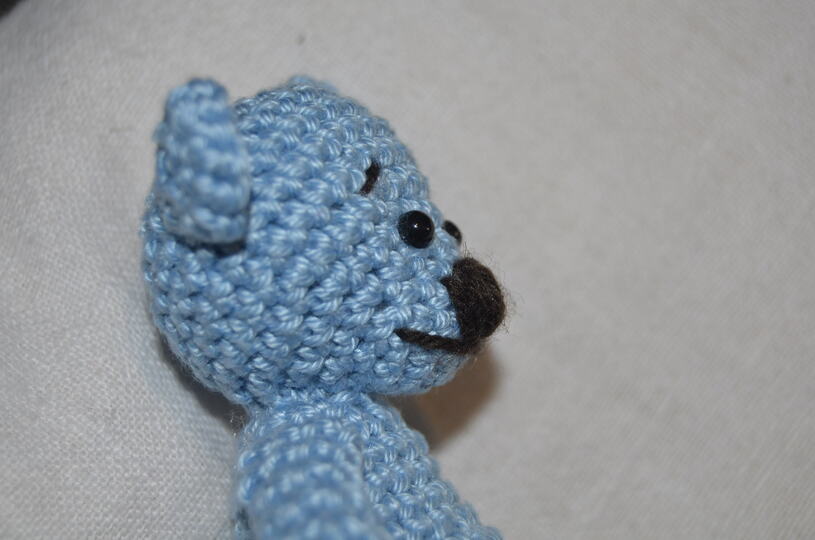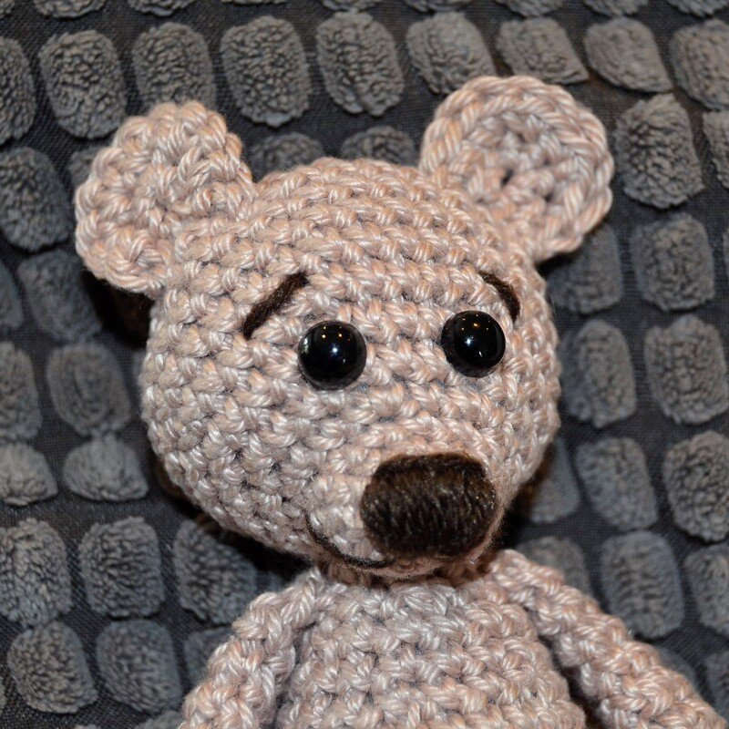 Natürlich kann der Bär auch in beliebig anderer Wolle gehäkelt werden.