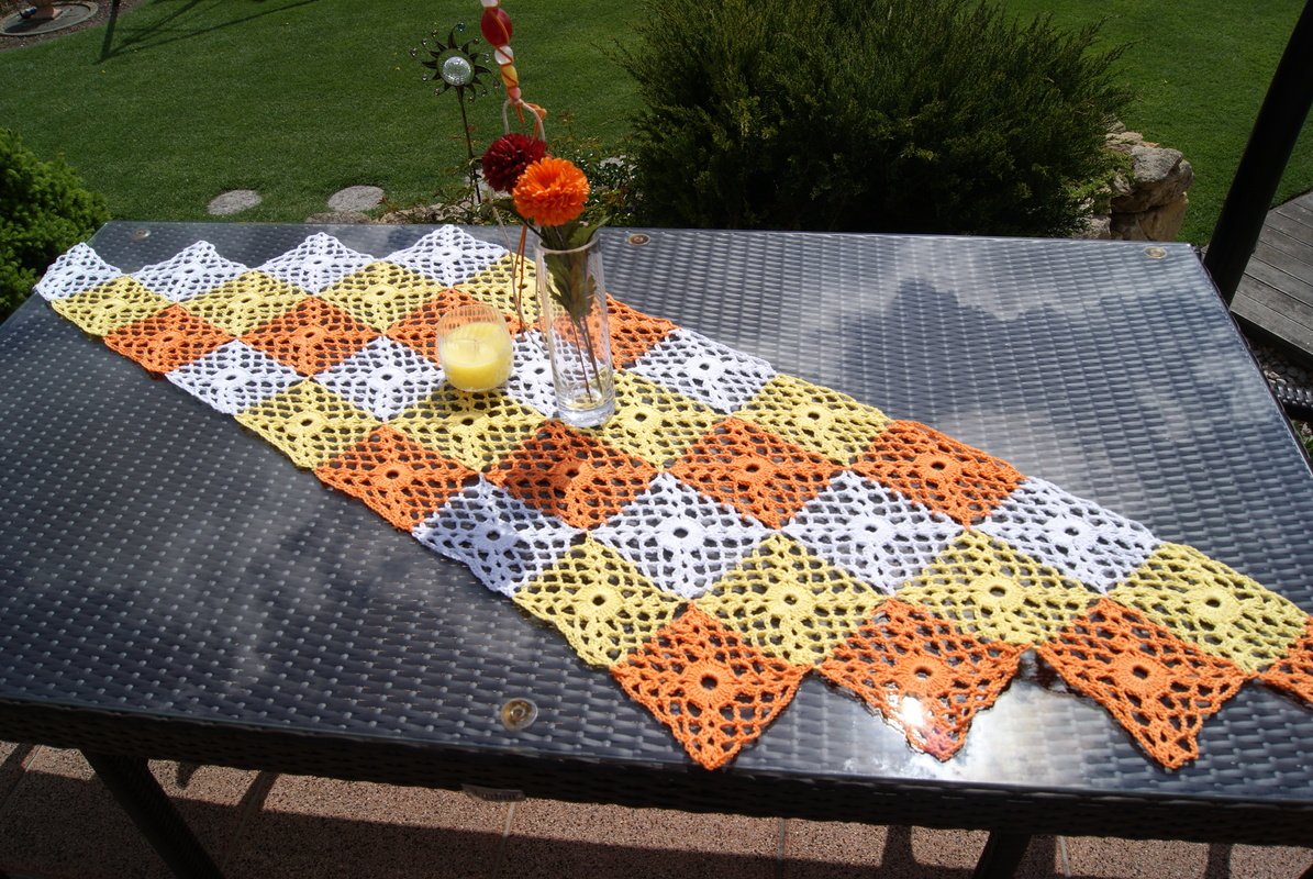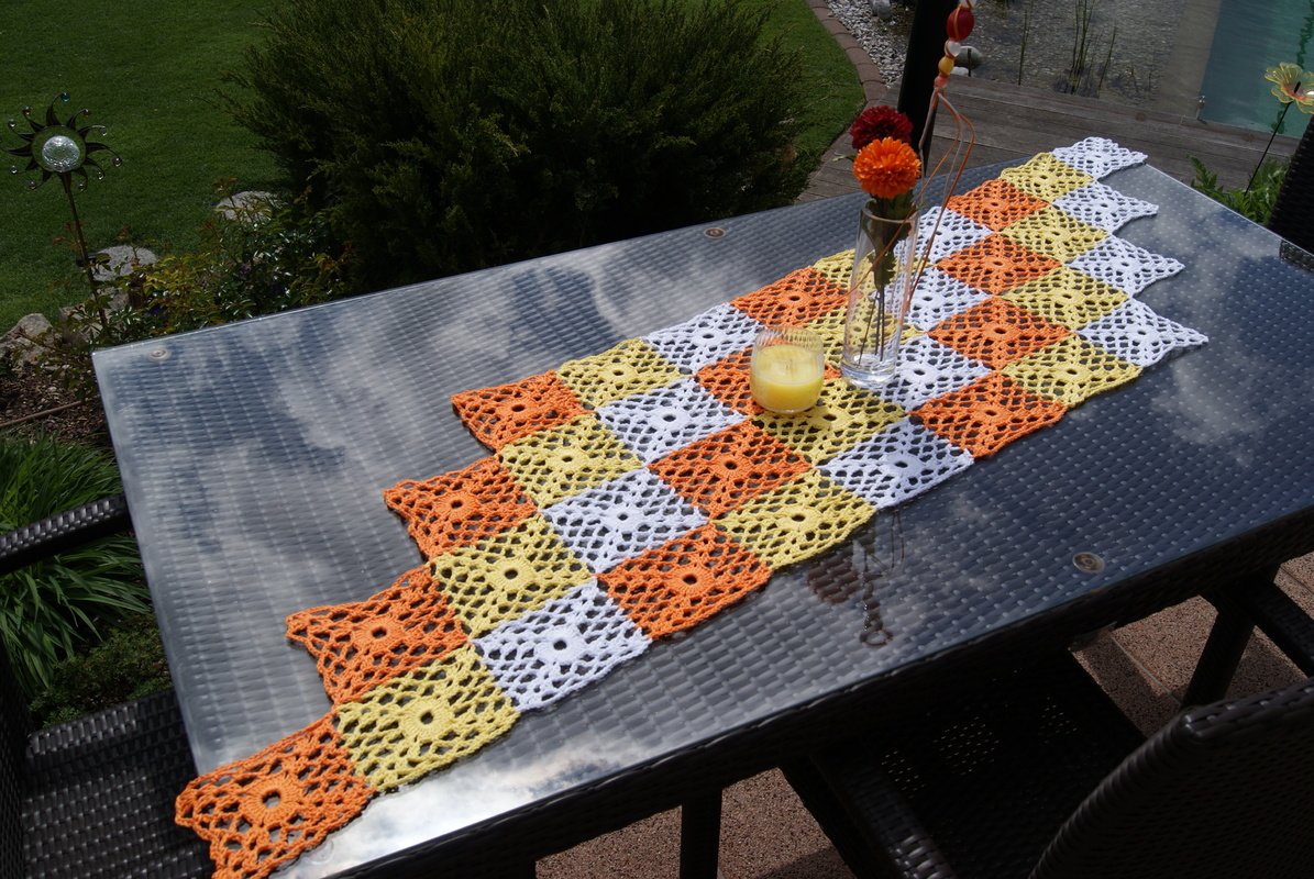 Tischläufer oder Tuch – beide Varianten sind ein echter Hingucker und auf jeden Fall dekorativ für Tägerin oder Tisch … egal ob für sich selbst oder als Geschenk! Je nach Anordnung der einzelnen Grannys kann das Stück in verschiedenen Größen und Ausführungen gehäkelt werden.