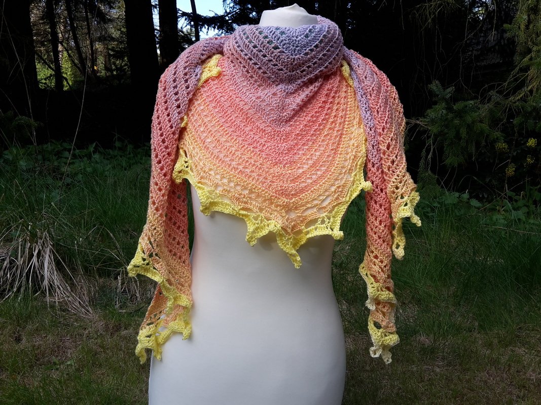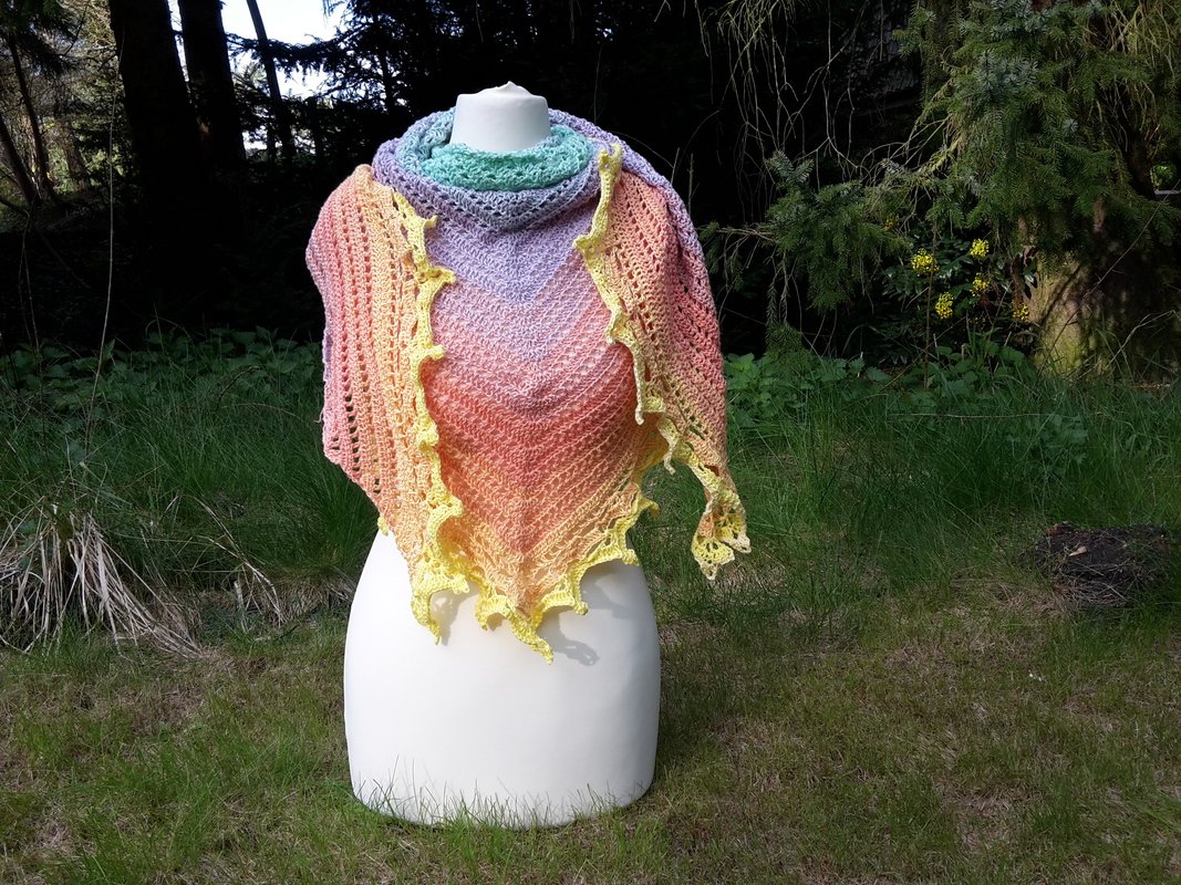 Das Tuch hat eine Spannweite von etwa 1,80 m - die Größe kannst du aber leicht varieren indem du