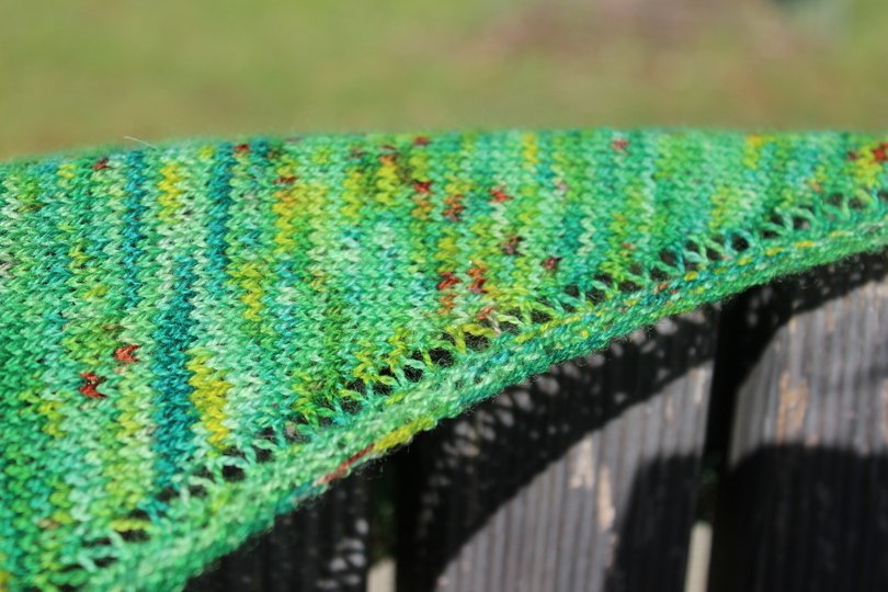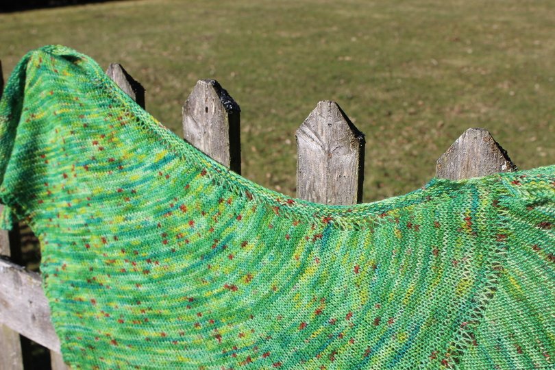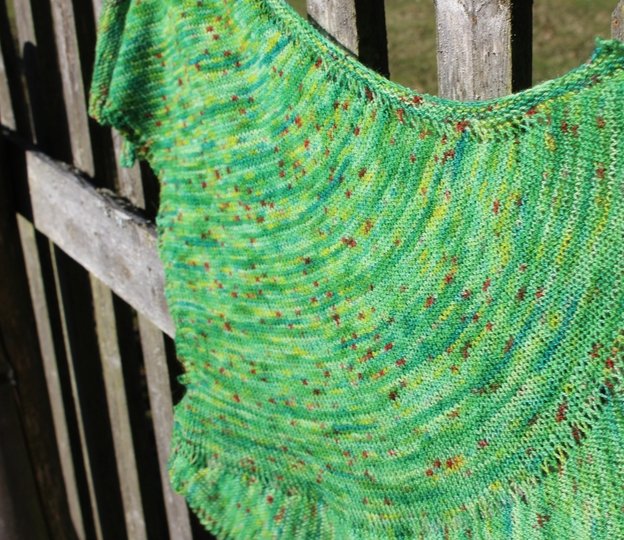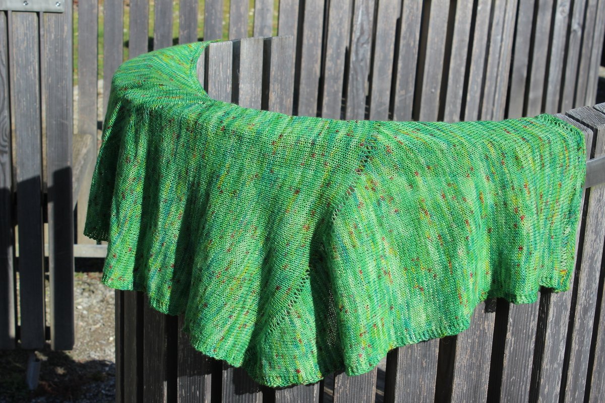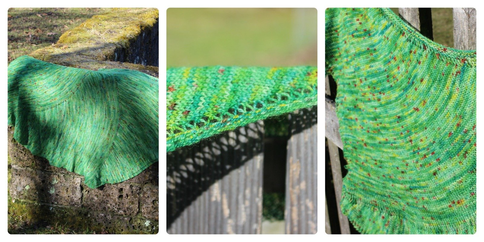 Für dieses Tuch habe ich die Wolle meiner Lieblingsfärberin, Regula von Faerbstoff, die ich beim 1. Schweizer Wollfestival in Zug kennengelernt habe, verwendet. Gemeinsam haben wir bereits mehrere Projekte veröffentlicht. Die Färbung dieser Wolle arbeitet für dich, denn sie benötigt kein kompliziertes Muster, was ihr sogar eher schaden würde, denn das Muster würde untergehen.