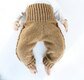 Es wird erklärt: Material, Berechnung für die Gr. 56-116, Hosenbeine, Oberer Teil, Bündchen, über 20 Fotos von Arbeitsschritten, 2 Links auf Videos mit der Erklärung von doppelter Luftmaschenkette und des Zopfmusters, 14 Seiten.