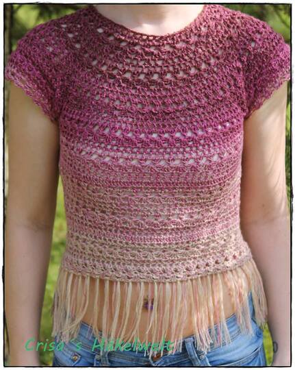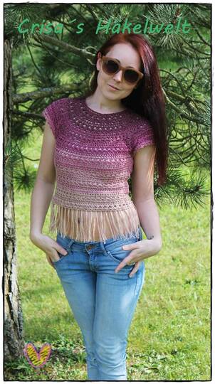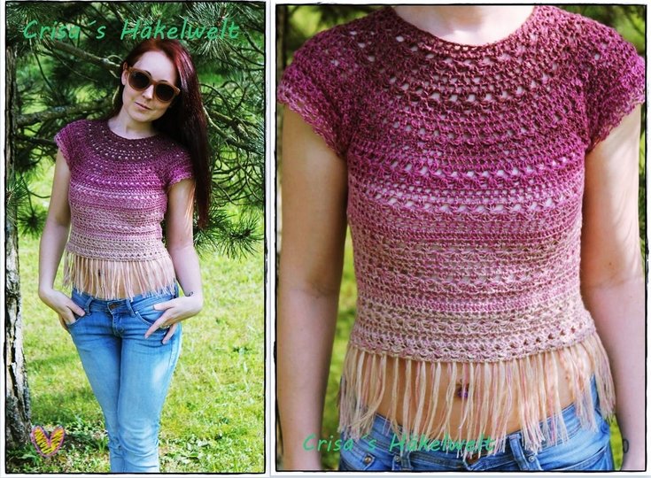 Lass uns zusammen dieses einfache und dennoch schöne Top in Bohostil häkeln. Es passt sehr gut zu Shorts aber auch zu Jenas, Rock und v.m.