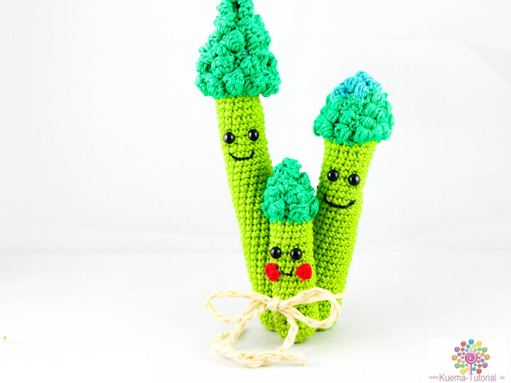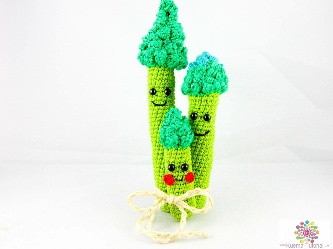 Im Frühjahr ist der grüne und weiße Spargel total begehrt und ich liebe ihn auch. Deswegen habe ich eine süße Anleitung dazu gemacht, wie immer mit niedlichen Gesichtern. Viel Spaß beim nach häkeln wünscht KümaTutorial.
