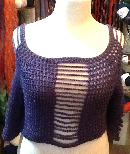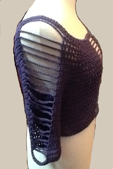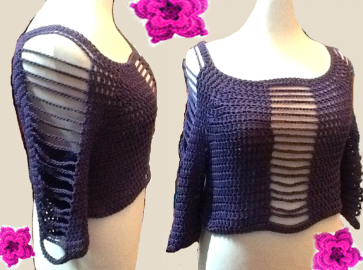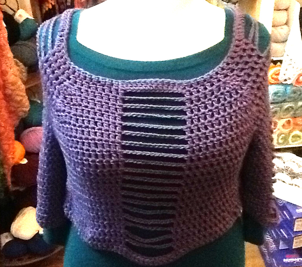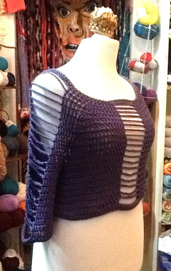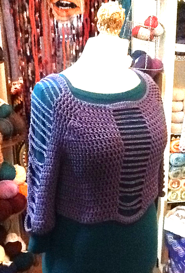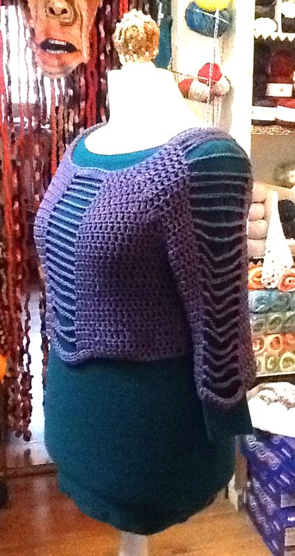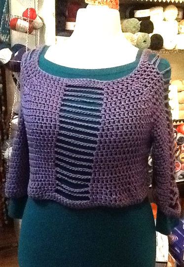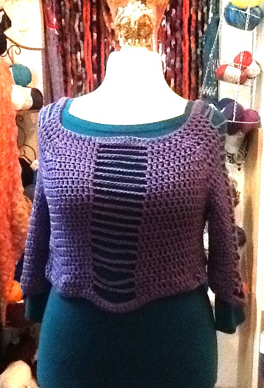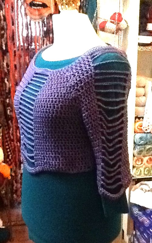 Dieser kleine Häkelpullover ist besonders schön, wenn man ihn über ein Kleid oder ein S-thirt trägt...(sonst gibt der „Ausblick“ einen zu großen Einblick!)