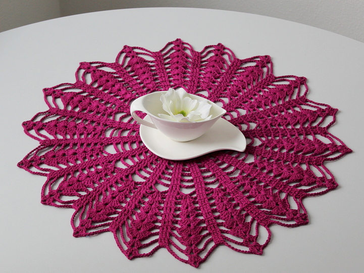 Schickes Wohnaccessoire in zartem Design. Die bezaubernde Tischdecke zeichnet sich durch sein wunderschönes Erscheinungsbild. Ob in der Küche, im Wohnzimmer oder auf dem Balkon, die Tischdecke vermag für eine bezaubernde Atmosphäre zu sorgen. Durchmesser 55 cm.