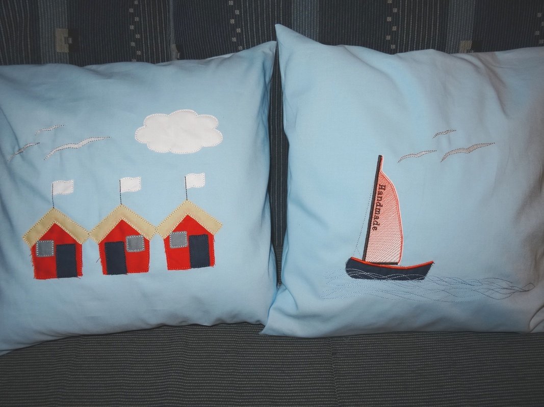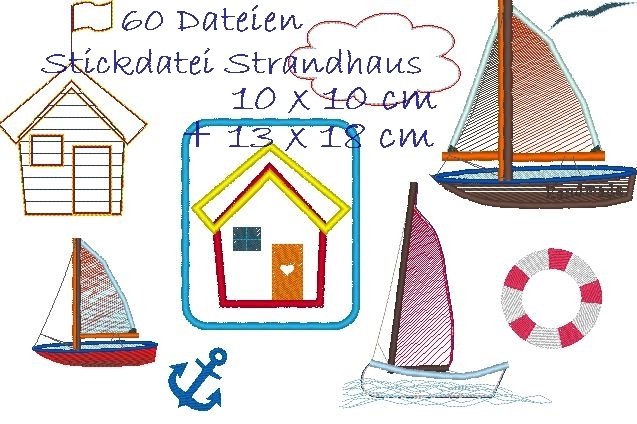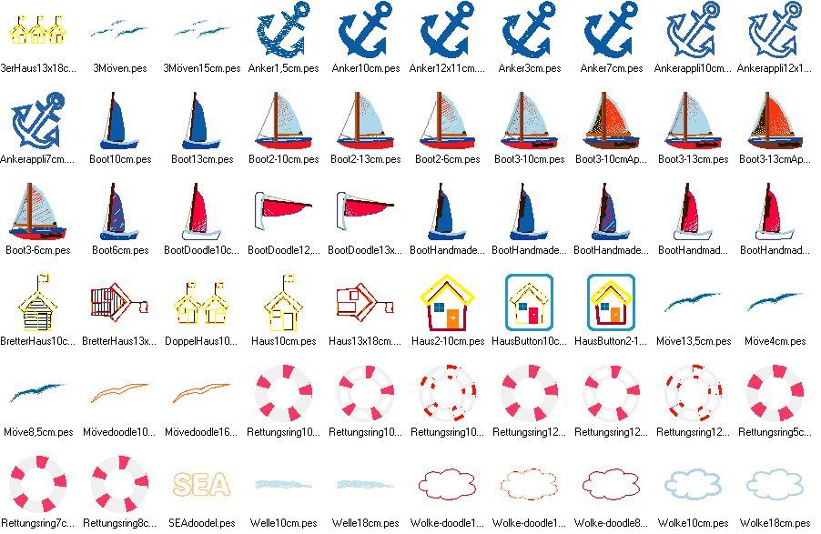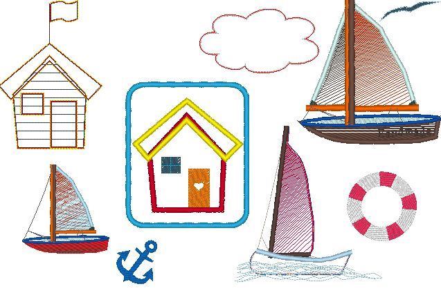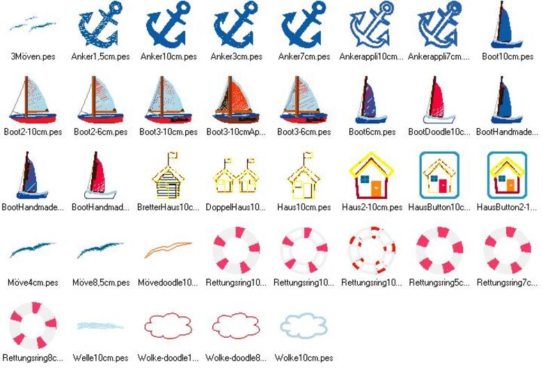 ♥ Stickdateiserie Maritim Strandhaus Segelbooten Anker Wellen Rettungsring Möwe ♥