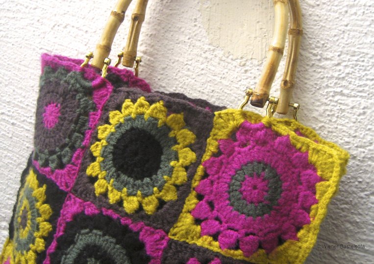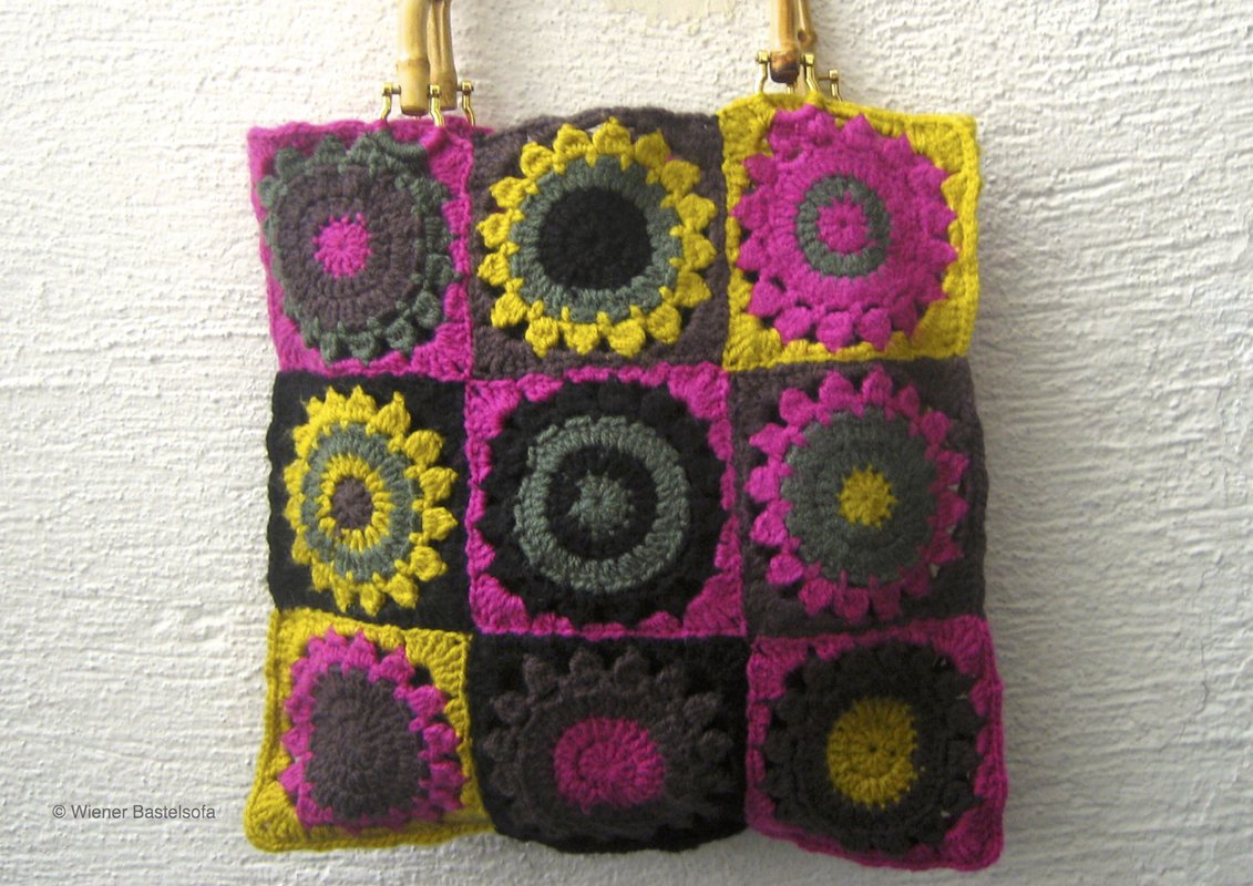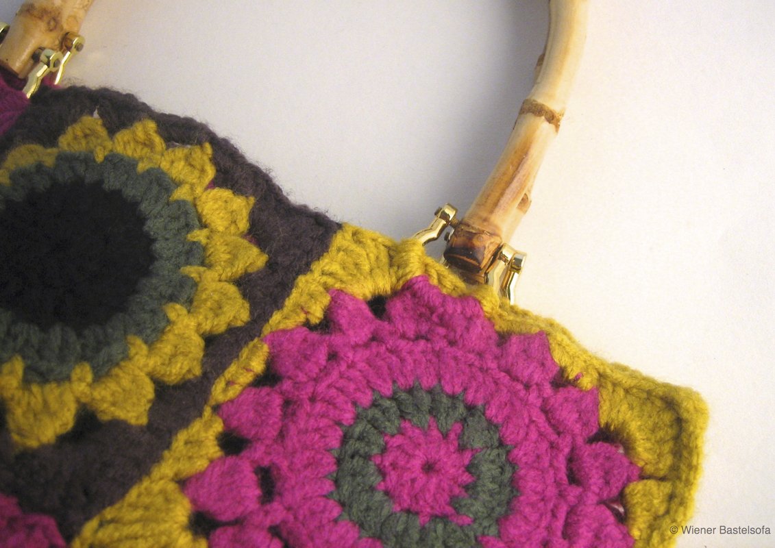 Retro-Tasche, Granny Squares, Handtasche im Stil der 70er Jahre