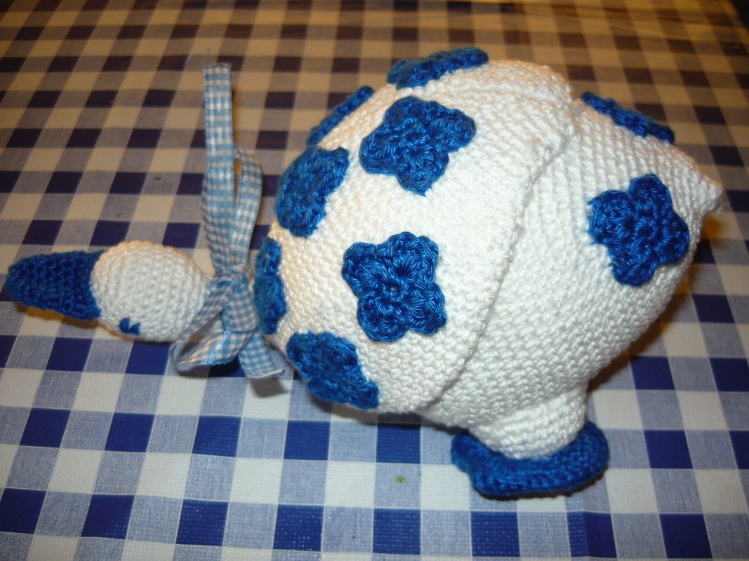 3) Schleifenband evtl. blau weiß kariert, ca. 50 cm lang
