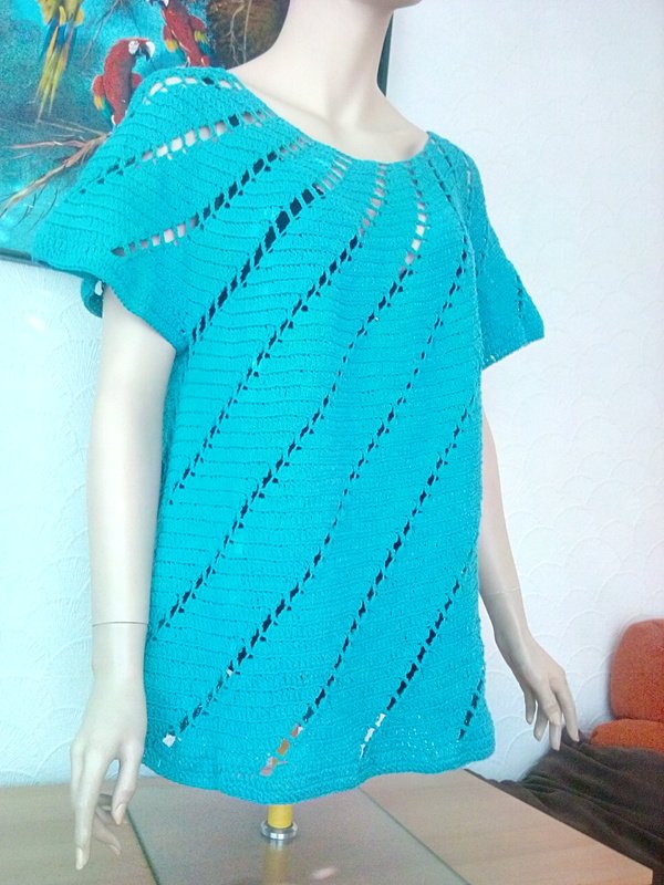 Die Tunika wird von oben nach unten in Runden gehäkelt damit entfällt das spätere Zusammennähen..