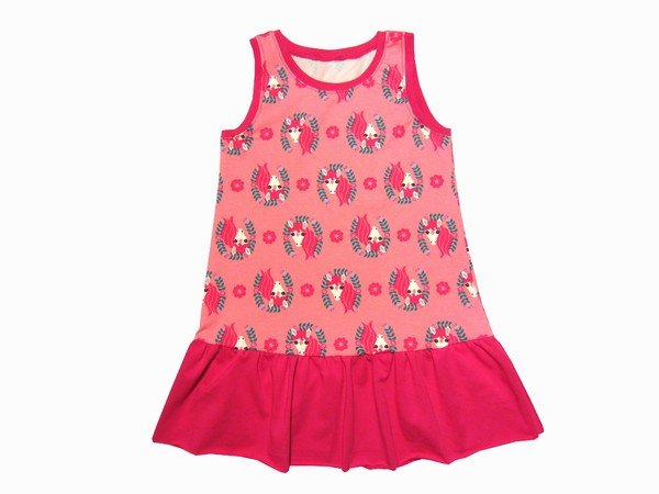 Dieses einfache Kinderkleid sieht super süß aus zu Leggins oder Strumphose. Reinschlüpfen und raus die Sonne genießen.