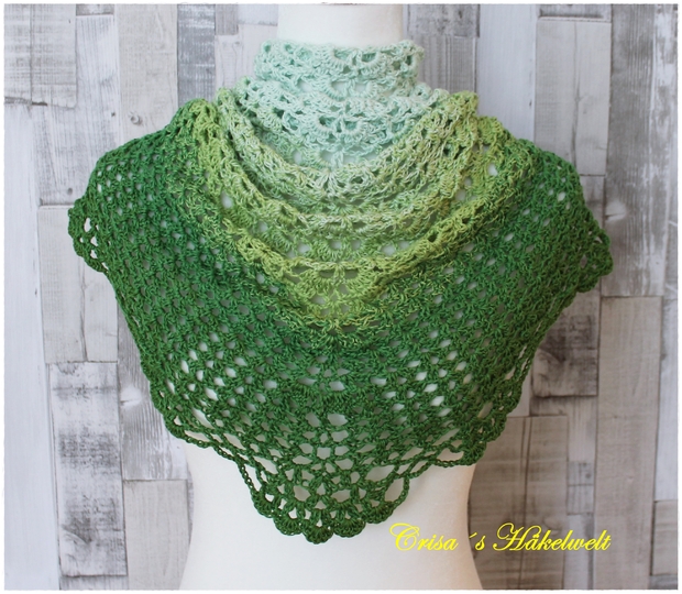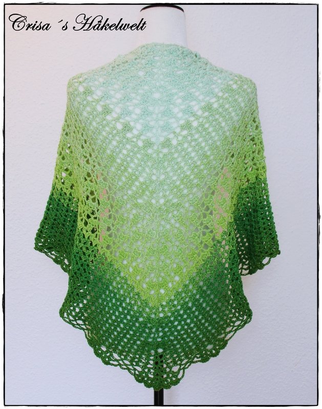 Mit der Ns. 4 gehäkelt wird das Tuch etwa 130x70 cm groß