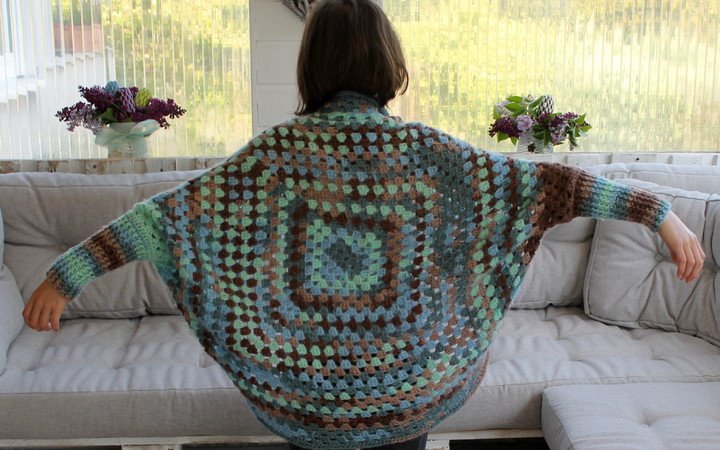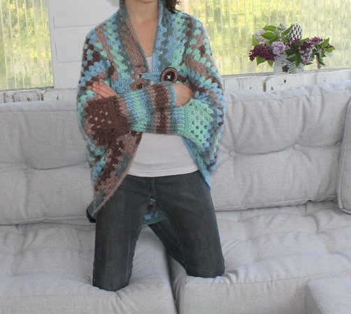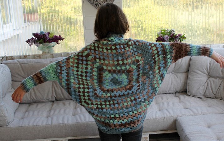 ein schönes, einfaches, aber sehr effektvolles Muster. Die Anleitung erklärt, wie die Jacke in jeder beliebigen Größe gehäkelt werden kann. Mit den in der Anleitung gemachten Angaben kann sie sowohl schön warm mit einem dicken Garn, als auch leicht und für den Sommer mit dünnem Garn gehäkelt werden.