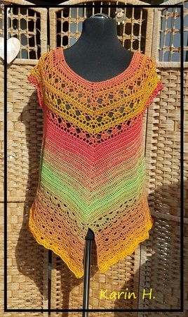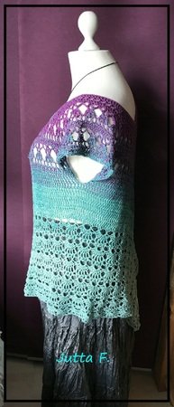 Verbrauch (circa) je nach Form die ihr häkelt, variiert das natürlich: Gr. 38- 800m, Gr. 40 (meine Variante) 900m, Gr. 42- 1000m, Gr. 44/46- 1200m, Gr. 48/ bis 52- 1400.