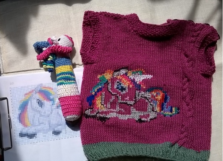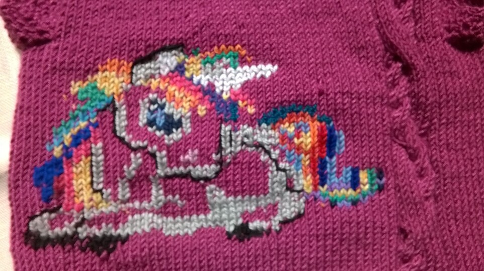 Für die Strickschrift des Einhorns sind 44 Maschen und 40 Reihen erforderlich.