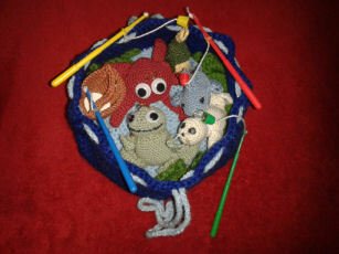Das Fischernetz ist dehnbar von 15-18 cm Länge und die Figuren sind zwischen 3-9 cm groß.