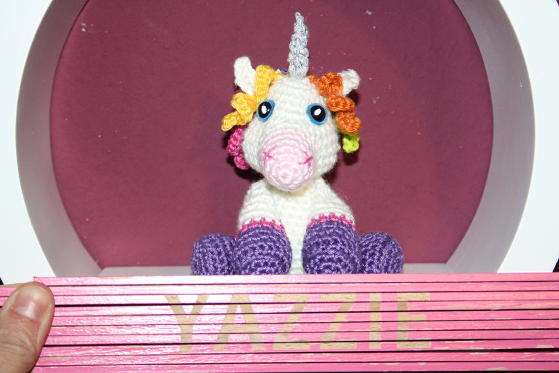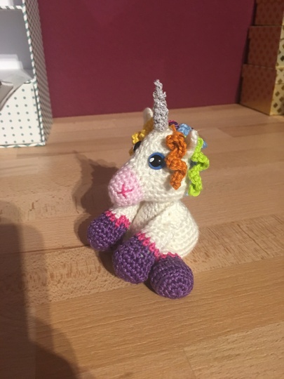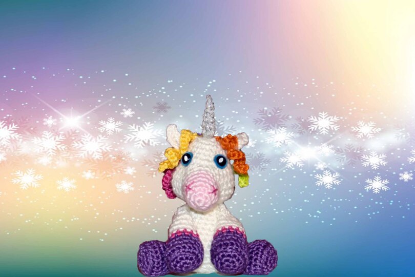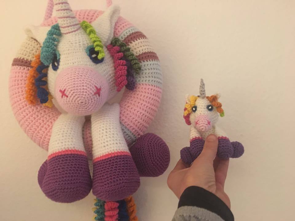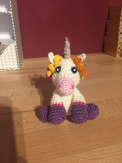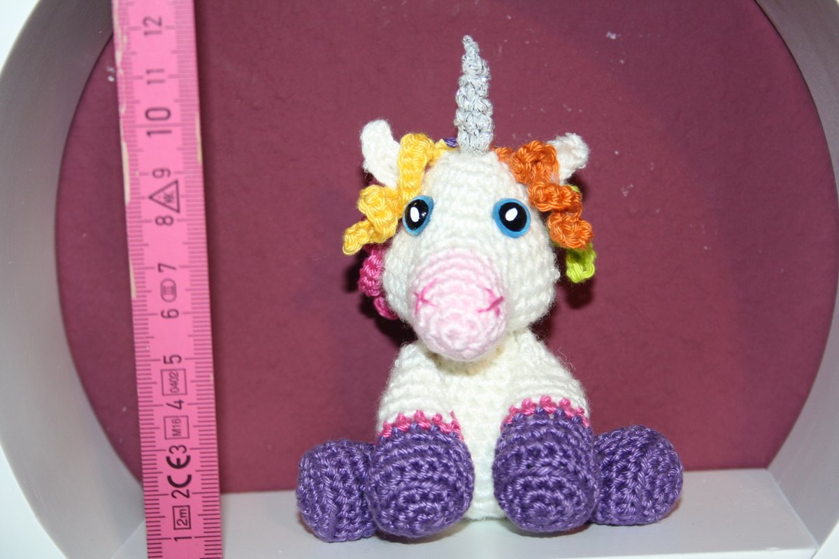Das Einhorn kann je nach Belieben in unterschiedlichen Farben gehäkelt werden.