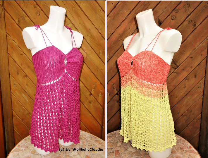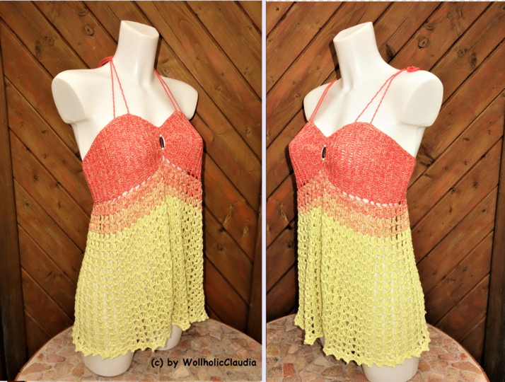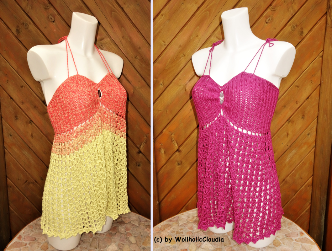 Mit etwas Durchhaltevermögen kann man es als Kleid verlängern. Die Anleitung ist nach Körbchengrößen unterteilt:
