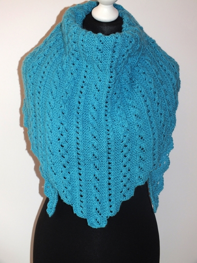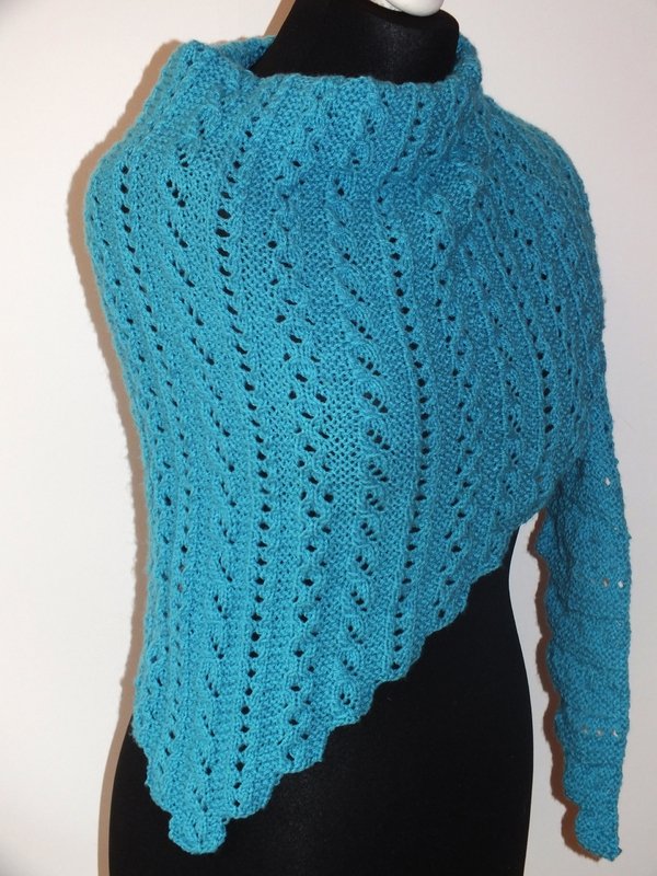 Mit Hilfe dieser Anleitung kann ein großes Dreieckstuch mit Struktur- und Lochmuster gestrickt werden. Die Muster sehen wie Zöpfe aus, es muss jedoch nicht gezopft werden. Die Optik entsteht durch die Löcher.
