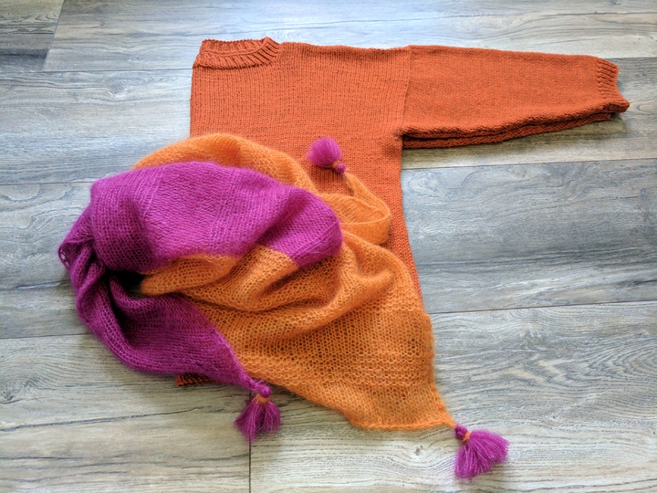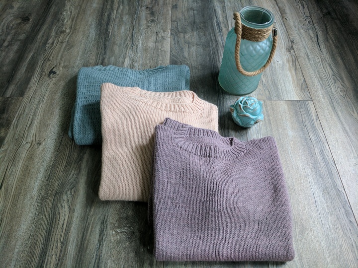 Der Pullover wird von oben nach unten gestrickt: